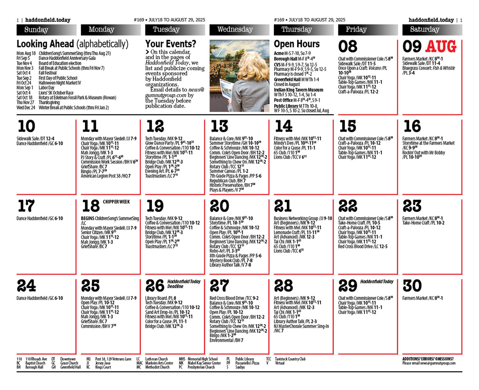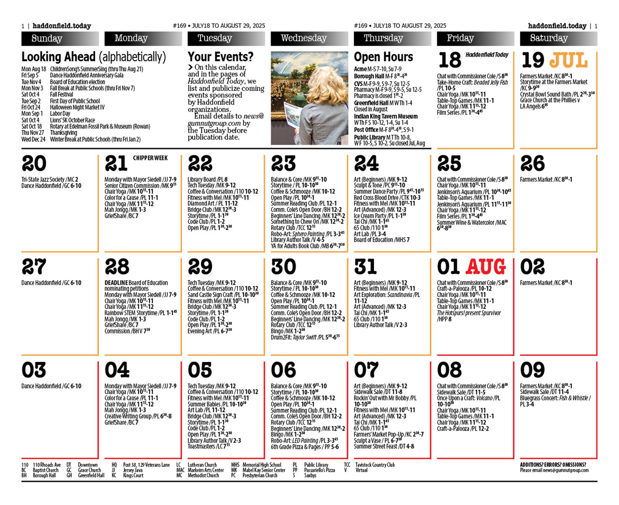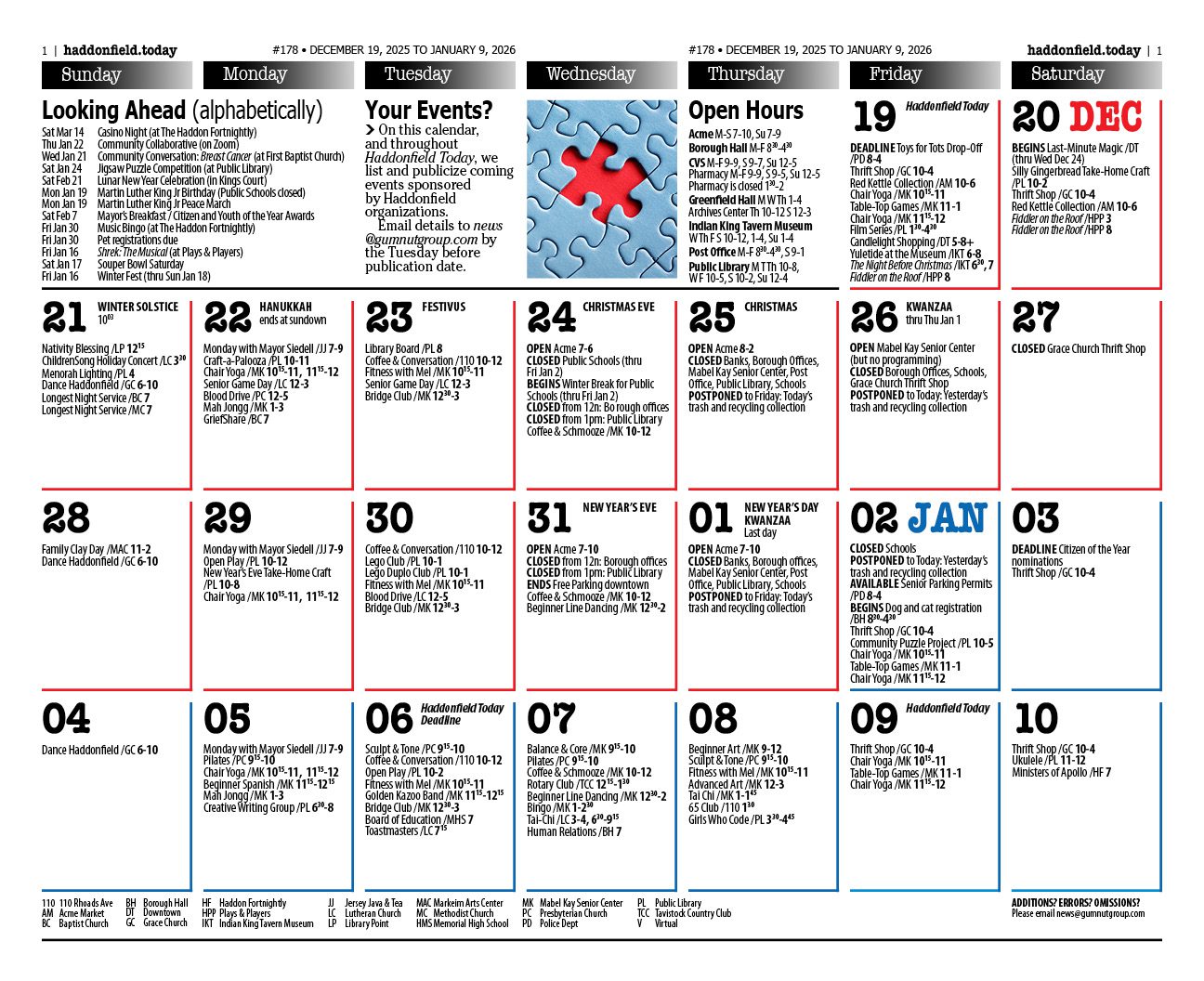 Haddonfield Town Calendar Rollover the dates to zoom in on the information. Haddonfield Calendar – December 2025/January 2026 Quick Contacts